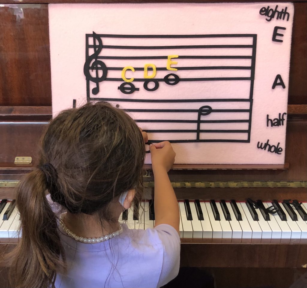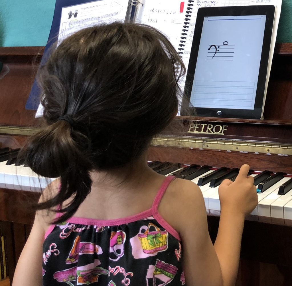 We have created tons of learning content over the years customized and tweaked specifically for our students to help them learn as easily and enjoyably as possible. Including: Treblemakers Piano Method. Digital Quizzes, Notation Felt Board, Flash Cards, Rhythm Cards, Learning/Resource Videos and Practice Logs. Many of the above are resources we’ve made available for free on suzanstroud.com. We’ve also built a constantly growing server of sheet music at different levels and styles so that students have plenty of great sounding pieces to choose from.